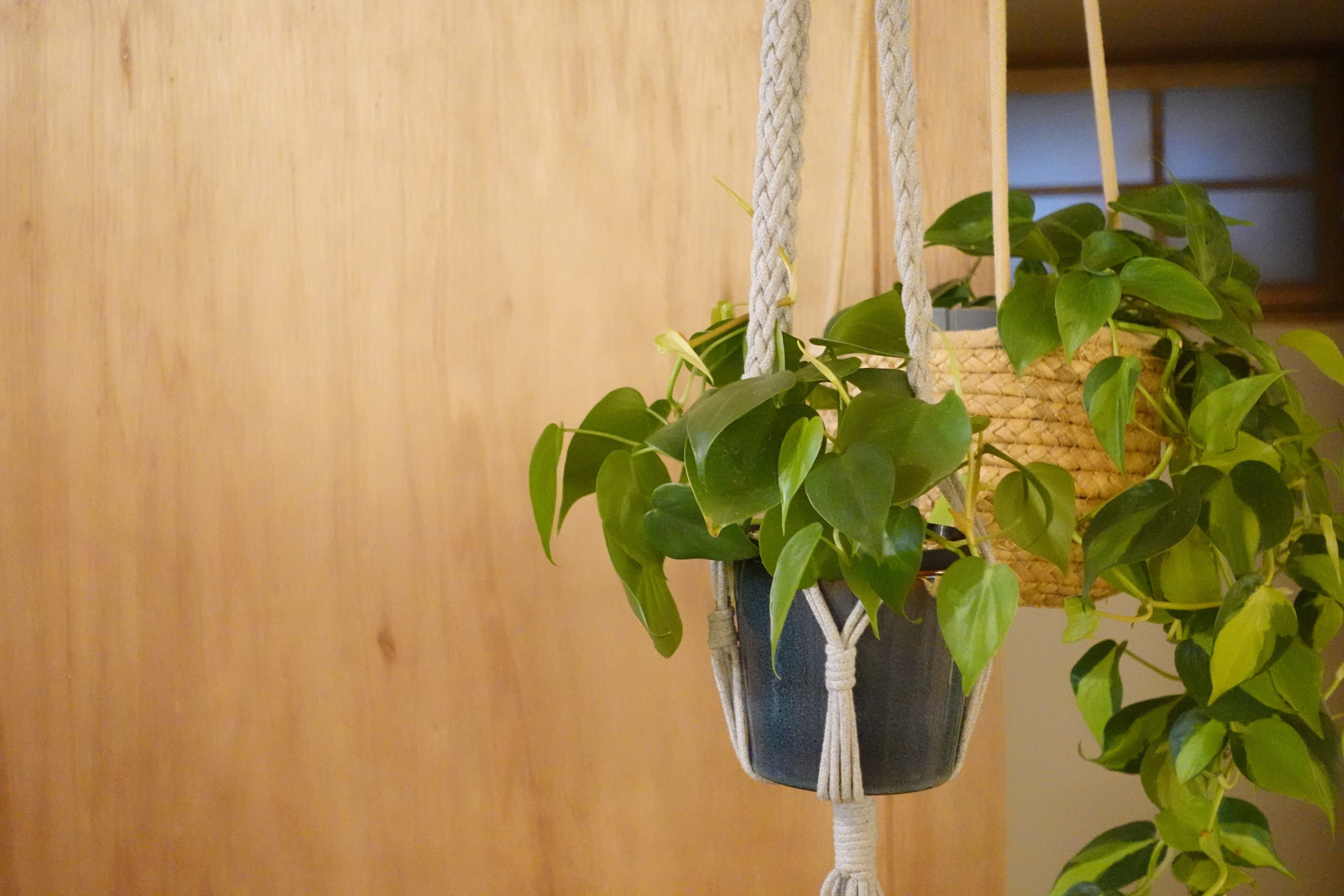 艶のある濃い緑色の葉は光沢があり、つる性の成長をするため吊り下げたり、支柱に誘引したりと様々な飾り方を楽しめます。