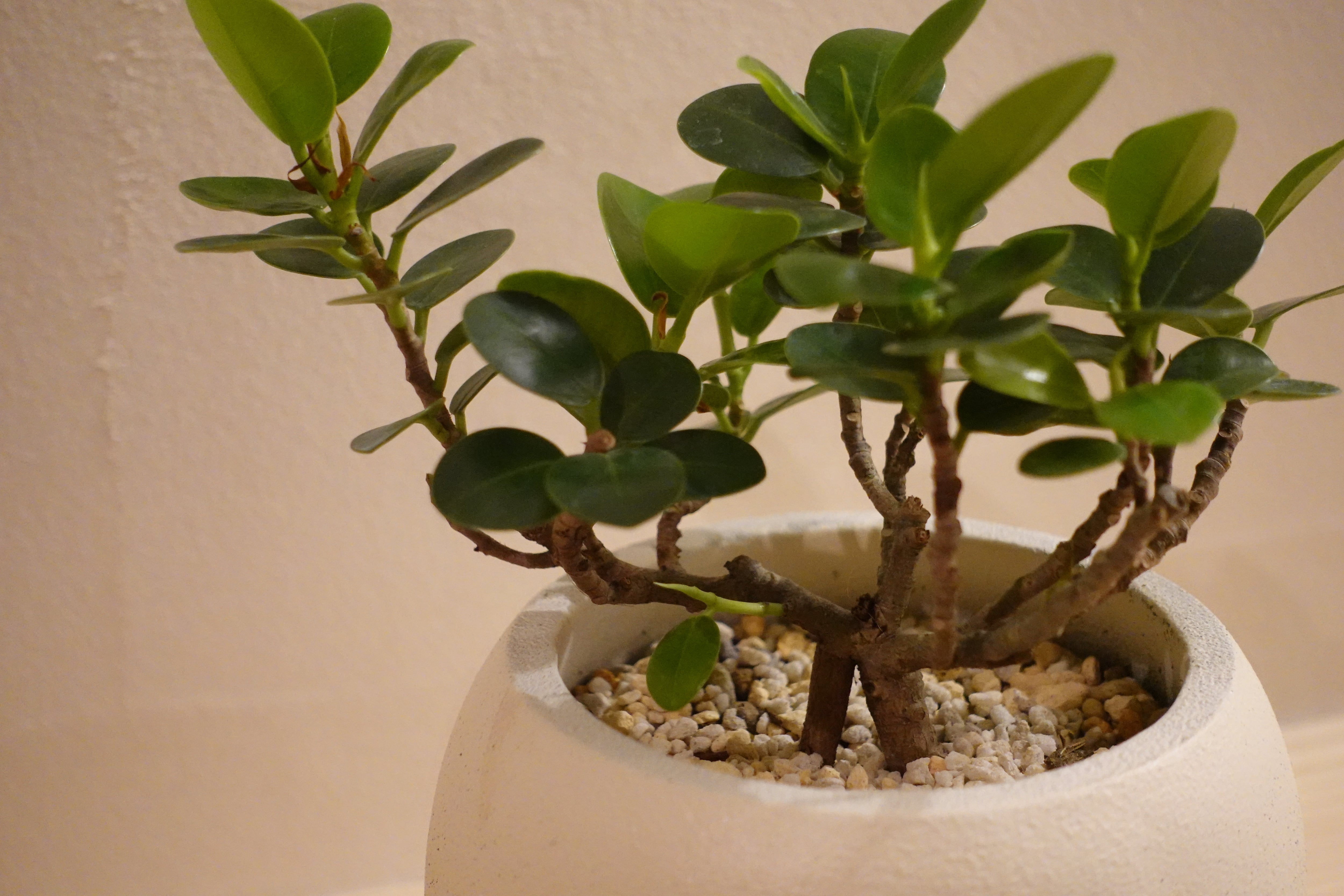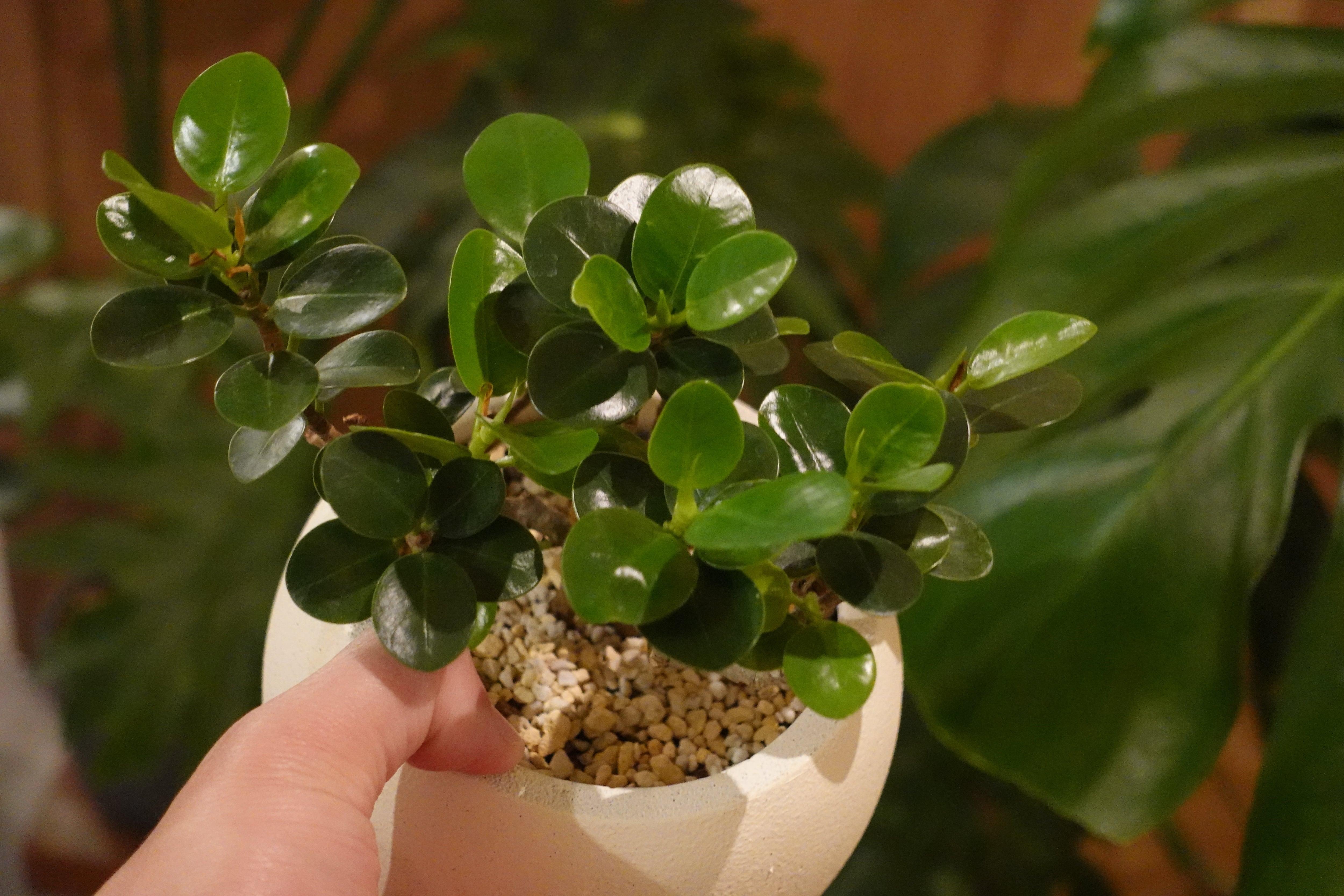 パンダ・ガジュマルは、通常のガジュマルより丸く肉厚な葉が特徴です。通常のガジュマルに比べ、成長が遅くて幹が太くなりにくいため、大きく育てるには時間がかかります。