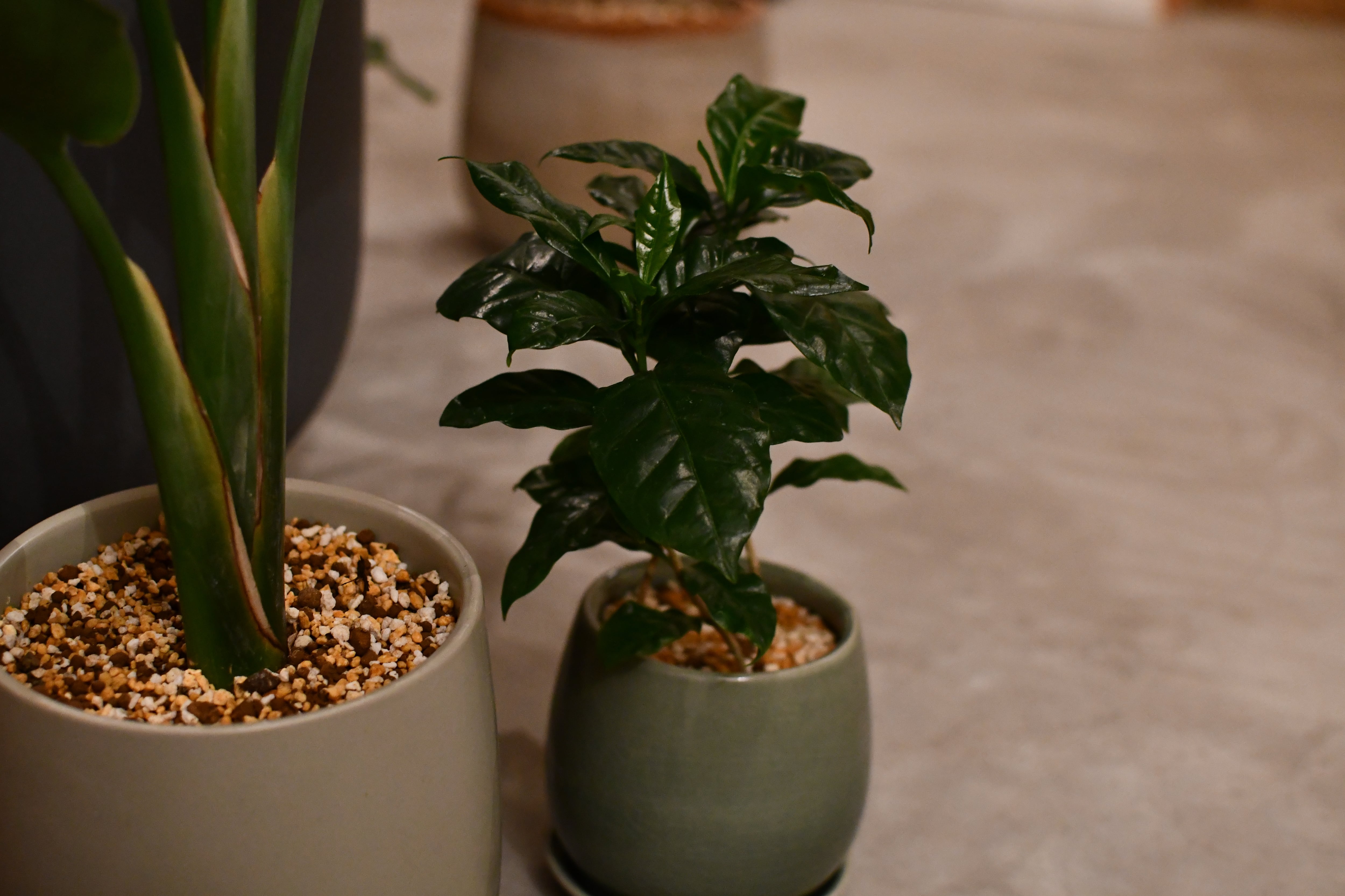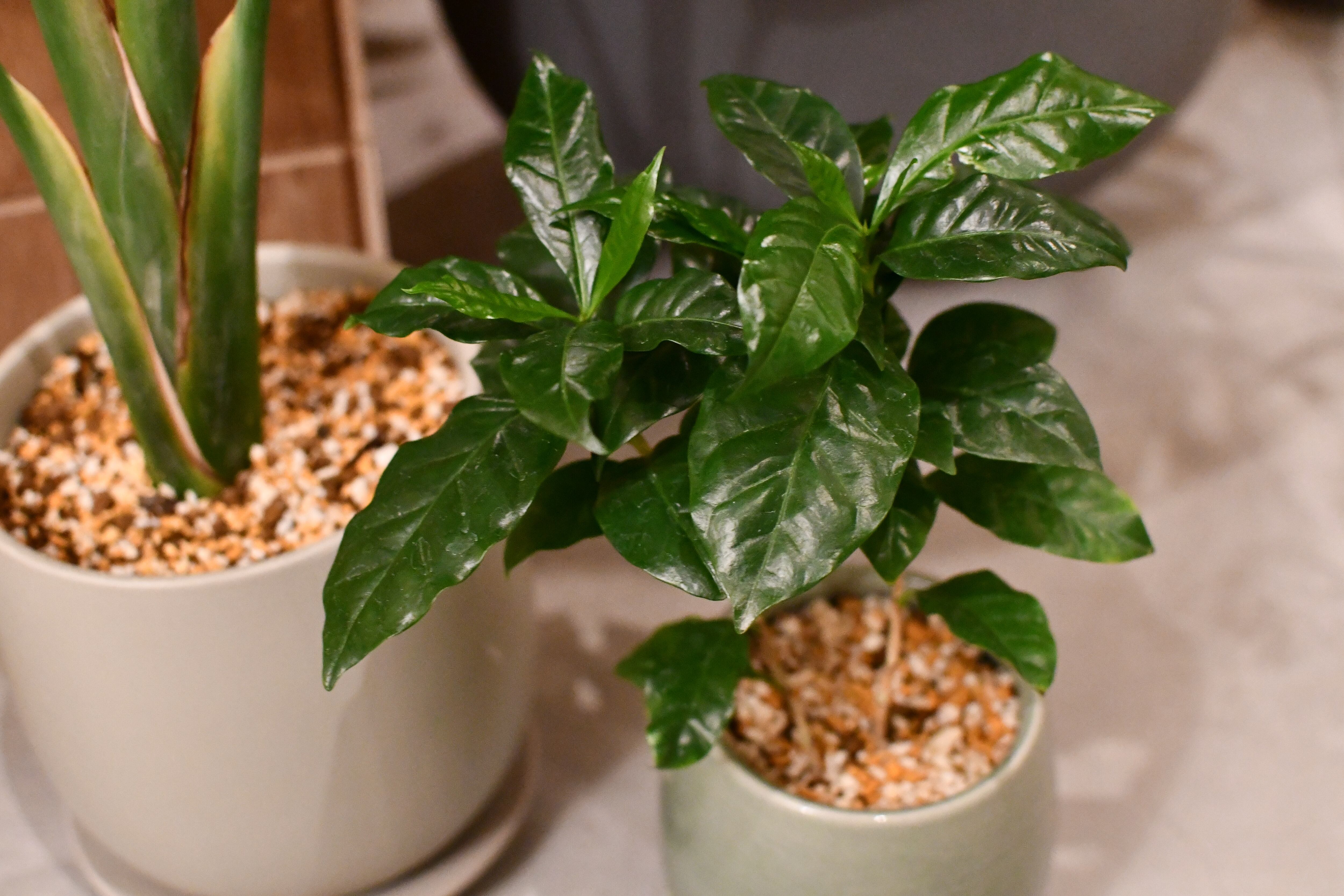 コーヒーの木は、光沢のある深緑色の葉が美しい人気の植物です。
