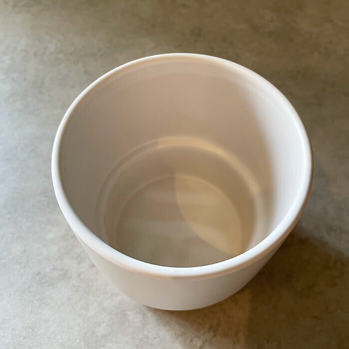 上はマット(ツヤなし)。下はザラザラ。ひとつで2つの質感を楽しめるセラミックの鉢カバーです。
