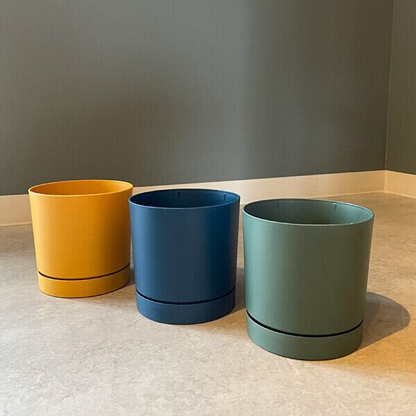 植物を入れるだけでコーディネートがきまるスマートなシルエット。植物と合わせやすい、深みのある3つのカラー(マスタード、オーシャン、グリーン)は、届いた日からインテリアのポイントになりそう。