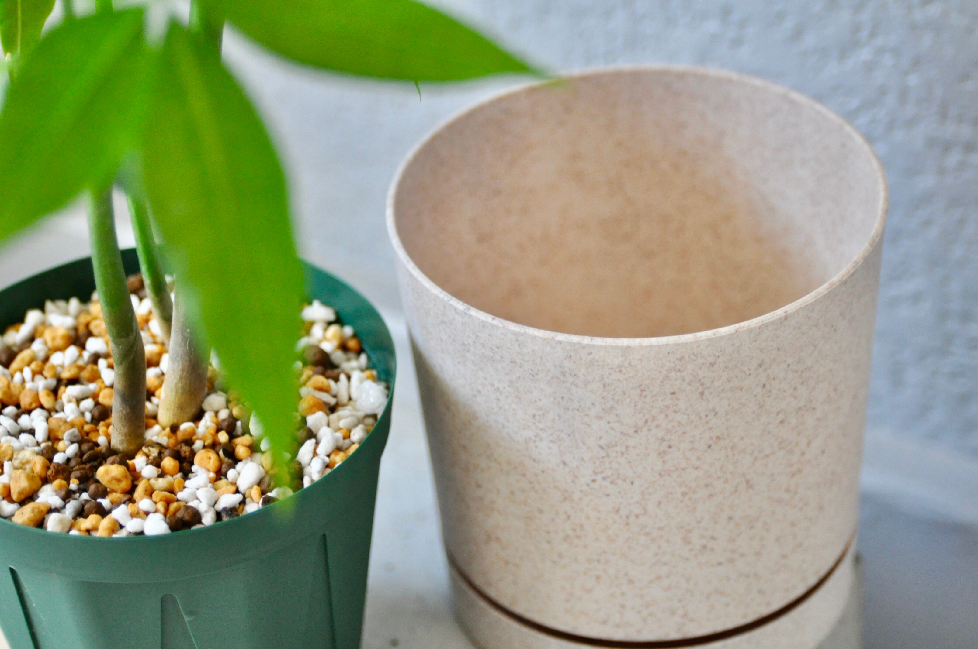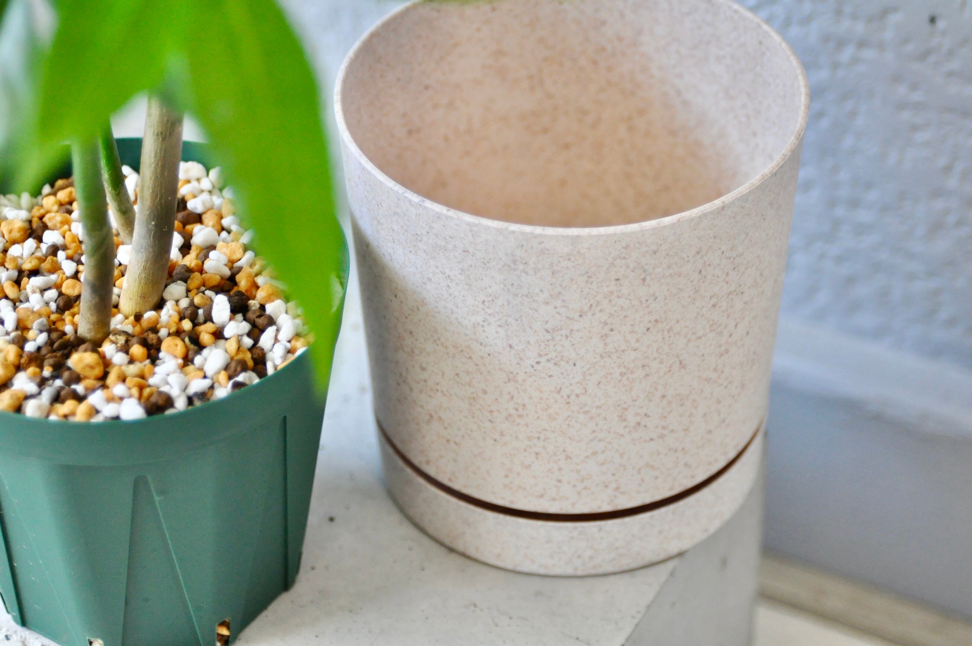 再生プラスチックを原料としつつも、どこか温かさと品が感じられるナチュラルな雰囲気で、どんな植物も似合います。全4色(ホワイト、ナチュラル、コーヒー、ブラック)。