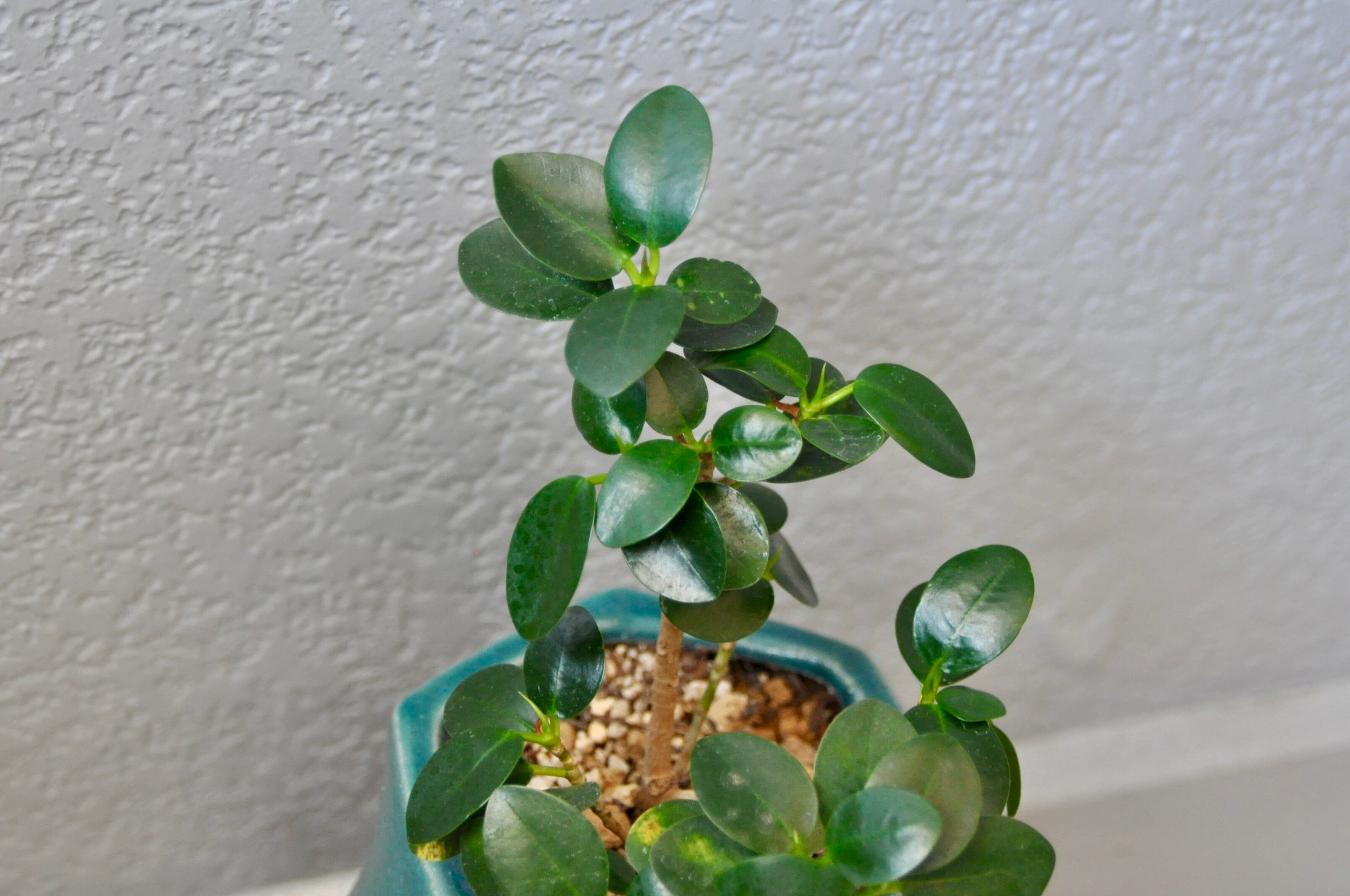 パンダガジュマルは、通常のガジュマルより丸く肉厚な葉が特徴です。通常のガジュマルに比べ、成長が遅くて幹が太くなりにくいため、大きく育てるには時間がかかります。