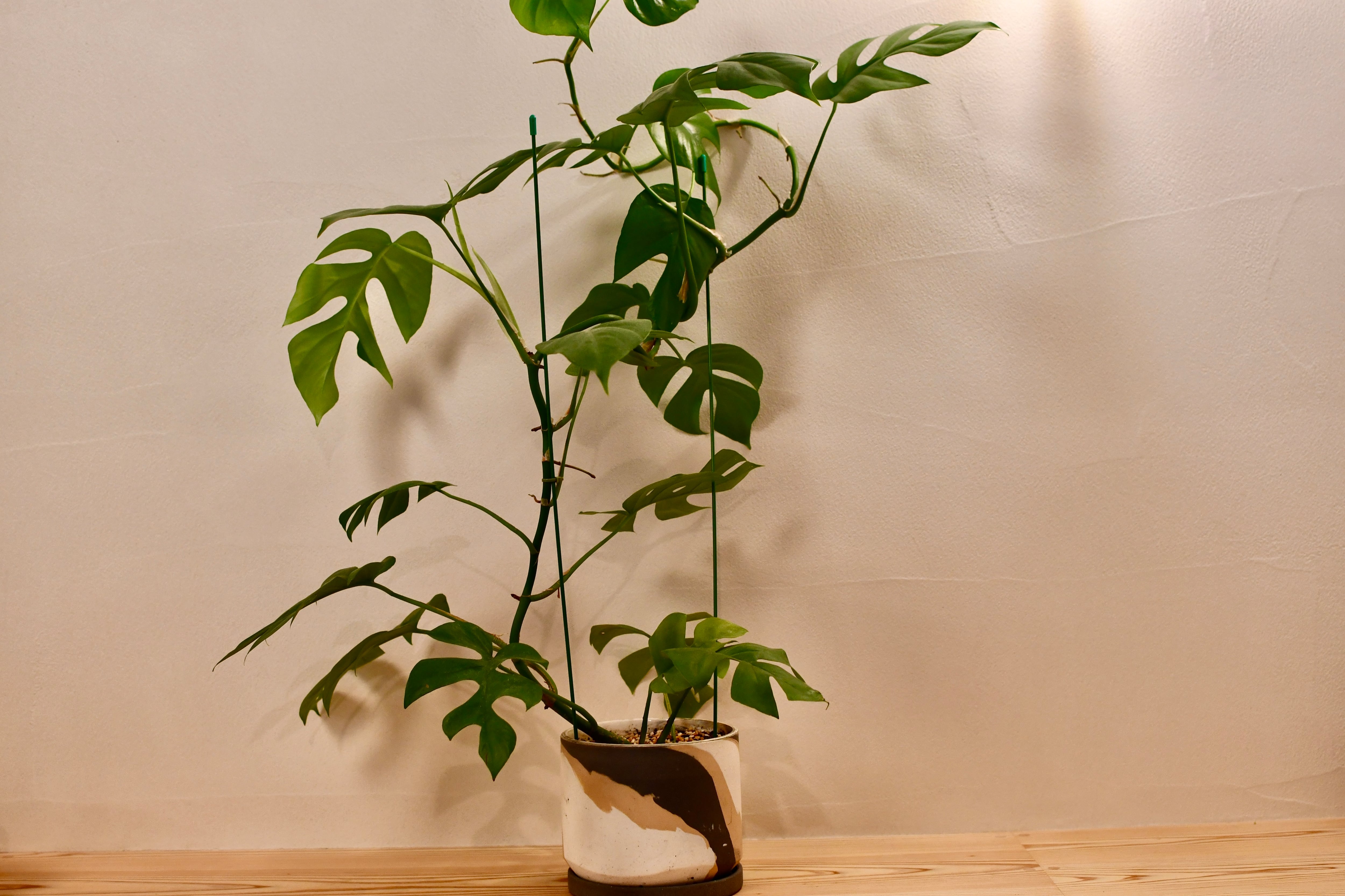 耐陰性があり育てやすく、省スペースでモンステラのような雰囲気を楽しめることから、近年人気が高まっている観葉植物です。