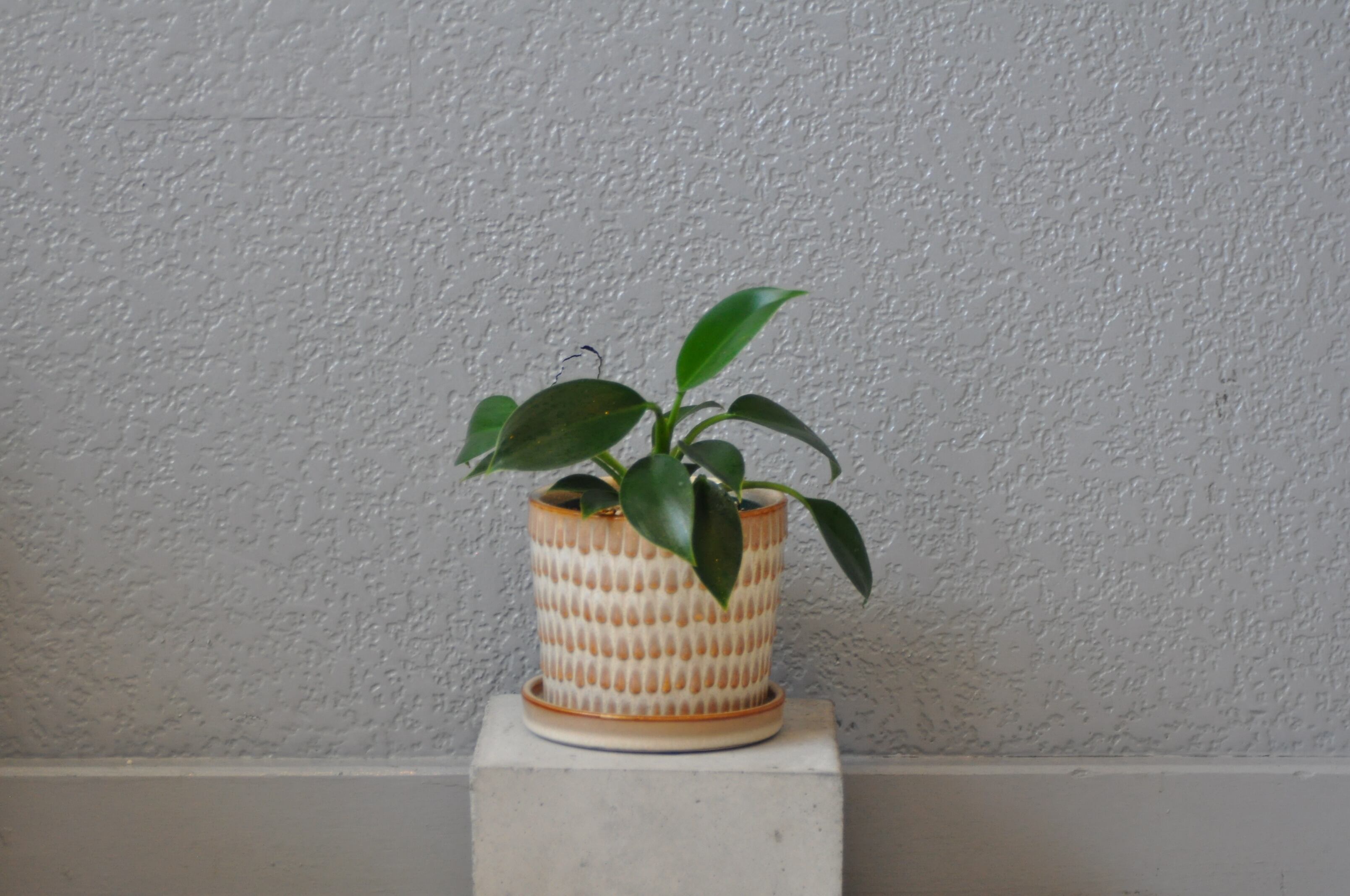 フィロデンドロン・グリーンプリンセス/スリット鉢+陶器鉢・ベージュ