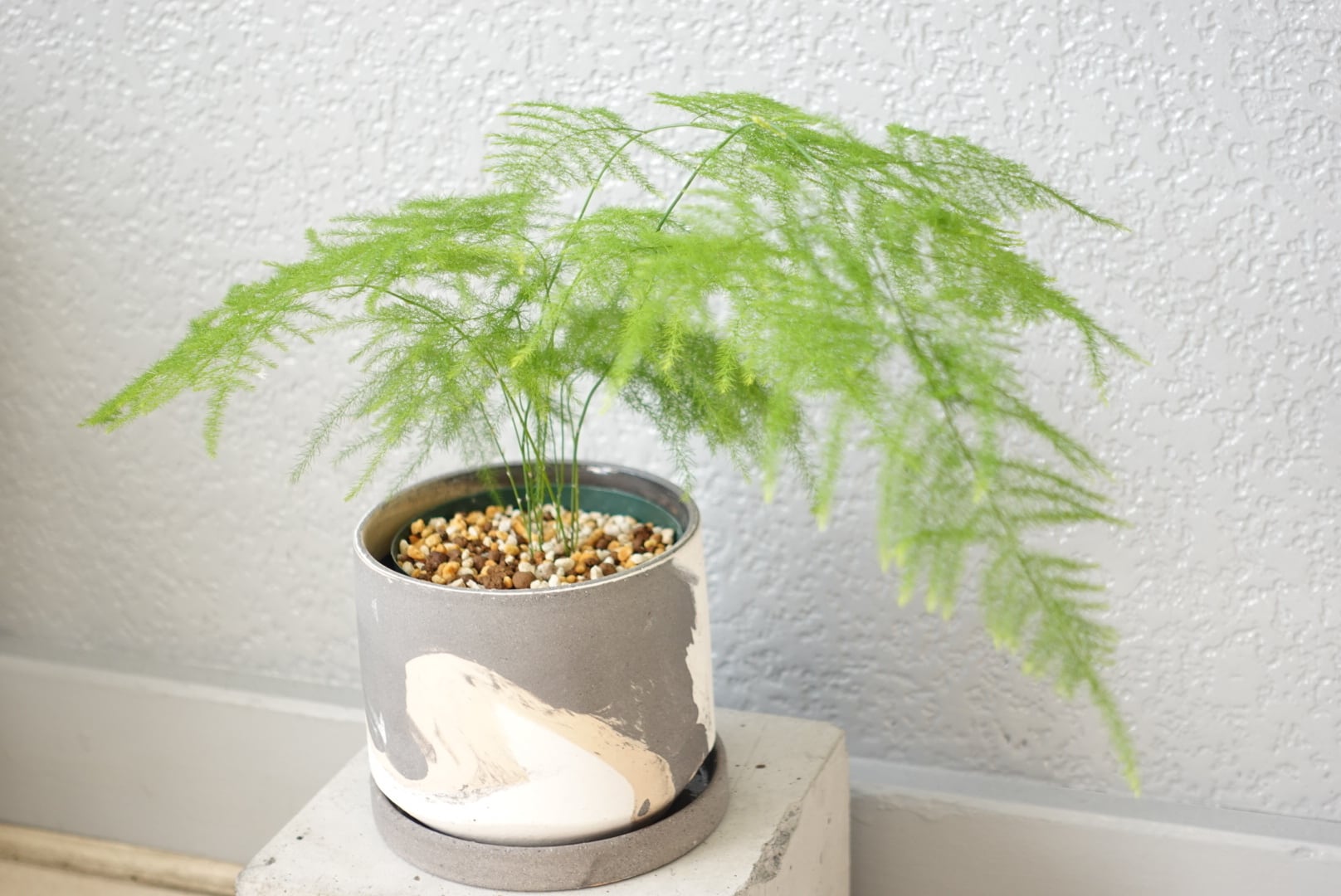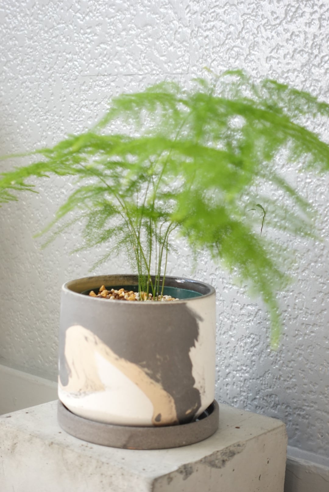 アスパラガス・プルモーサス・ナナス/スリット鉢+陶器鉢・マーブル