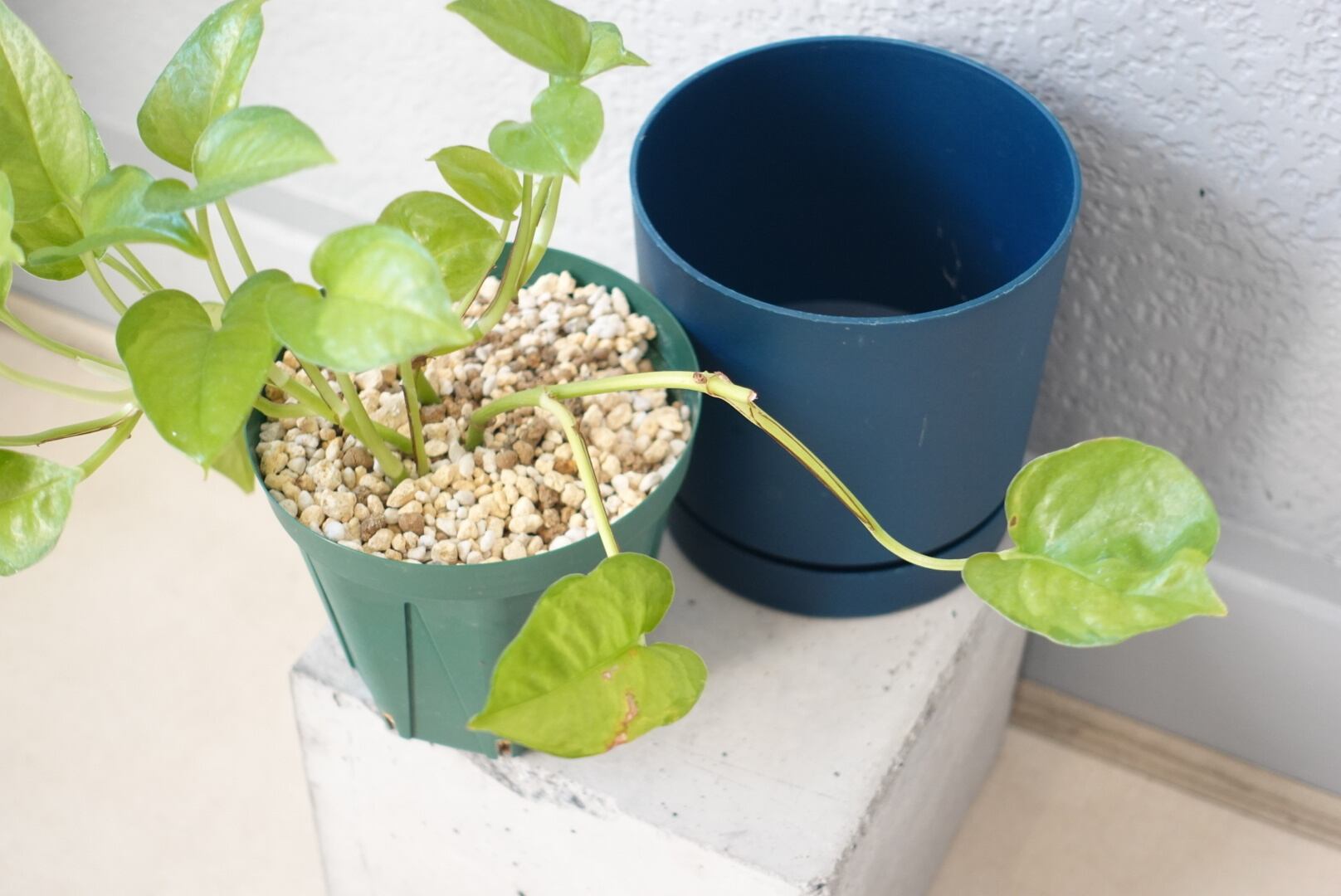 ポトス・グローバルグリーン/スリット鉢+ポーランド製鉢カバー・ブルー