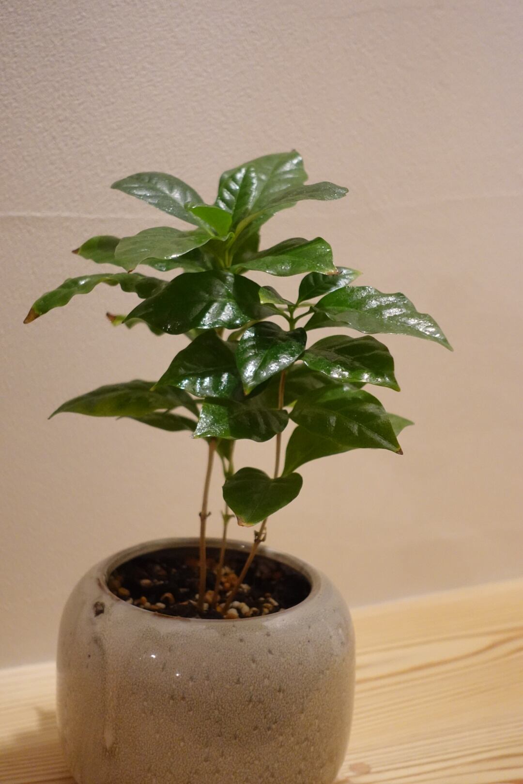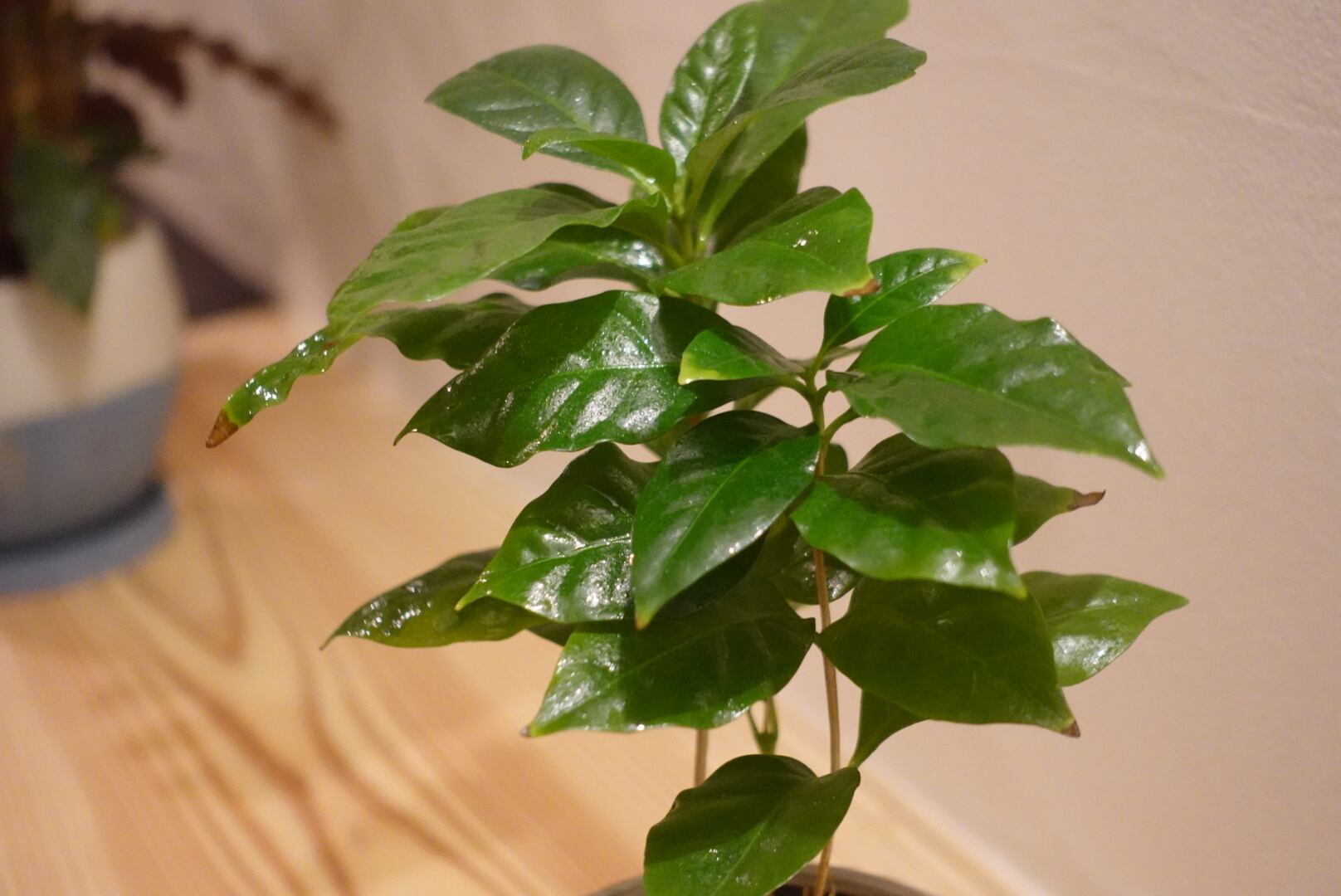 コーヒーの木は、光沢のある深緑色の葉が美しい人気の植物です。