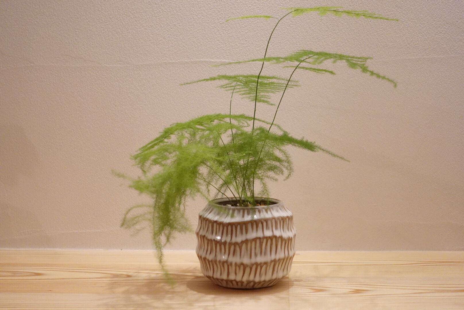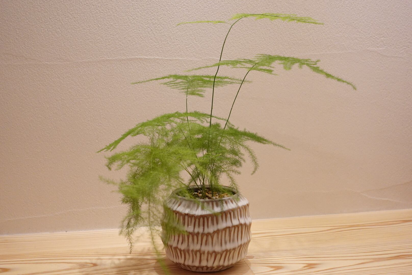 アスパラガス・プルモーサス・ナナス/陶器鉢・クリーム
