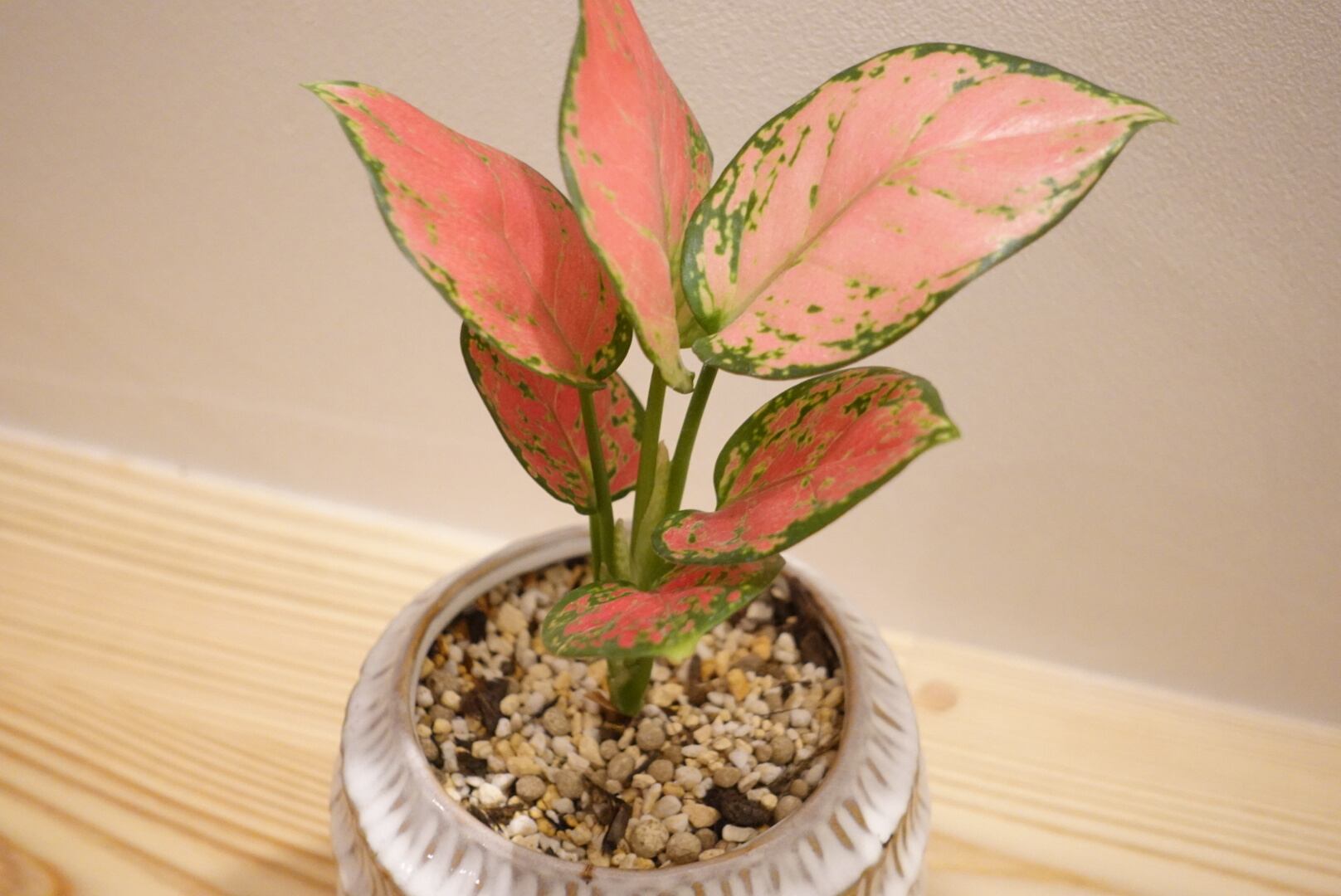 アグラオネマの中でも、鮮やかなピンクの斑が美しい品種です。