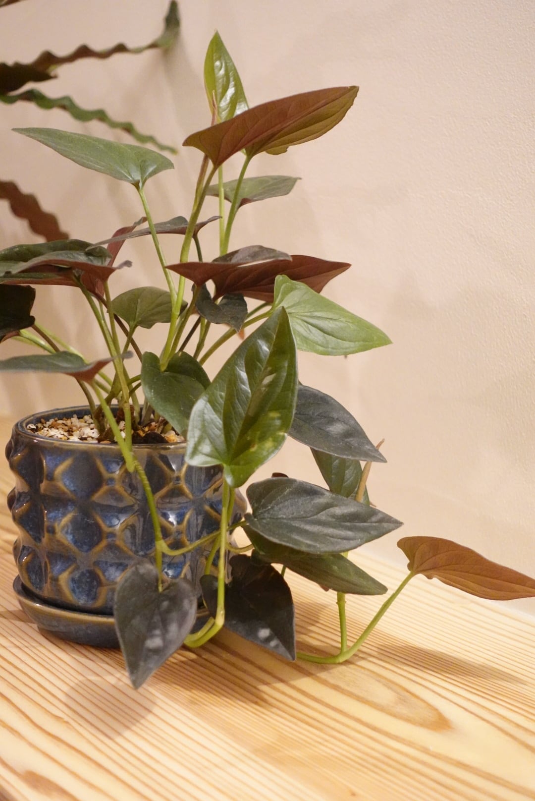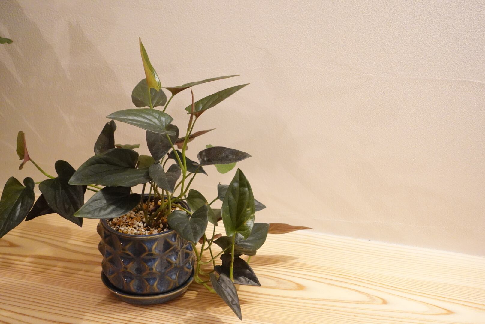 シンゴニウム・チョコレート/陶器鉢・ブルー