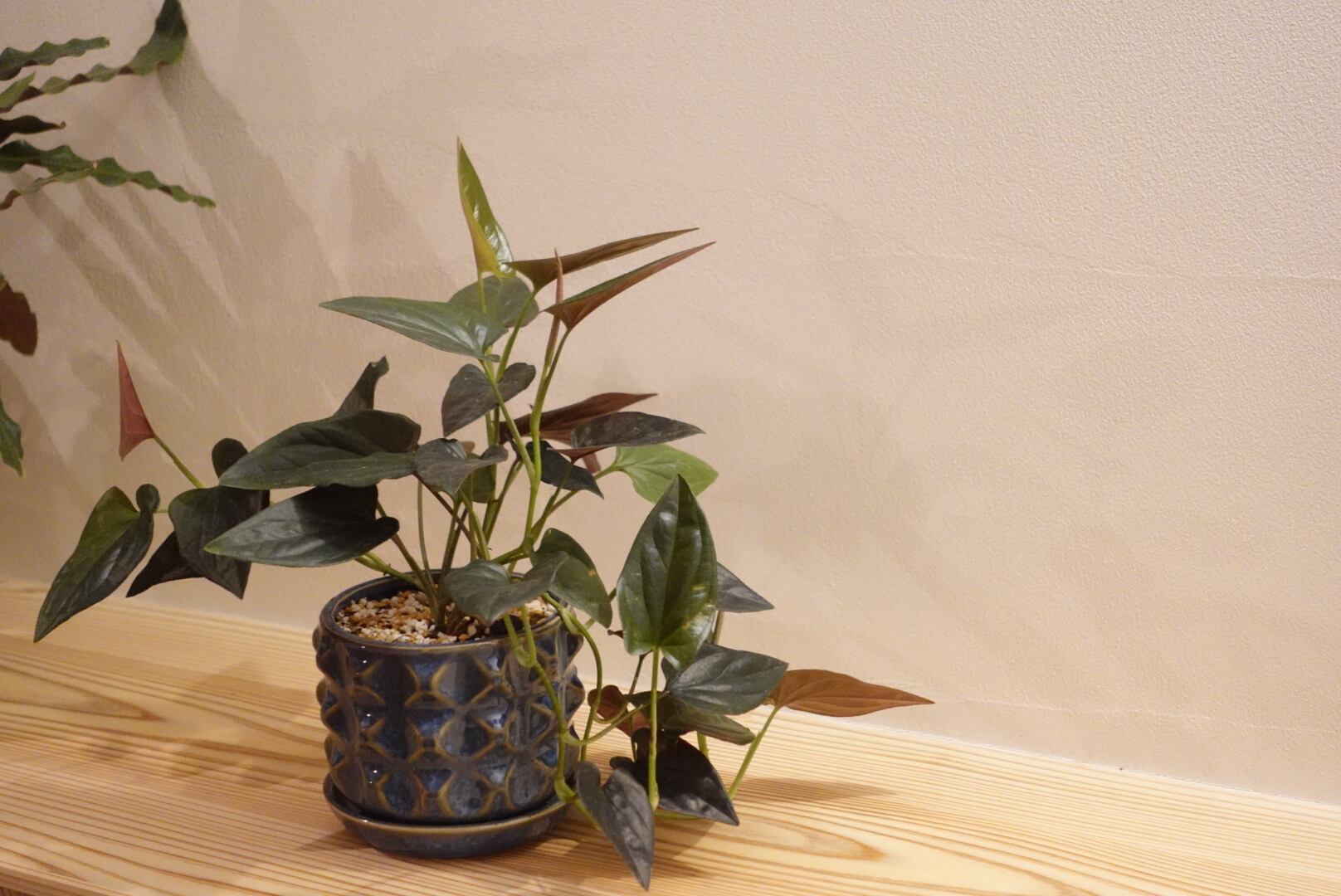 葉の表面はダークグリーン、裏面は赤茶色のコントラストがシックな印象の観葉植物です。